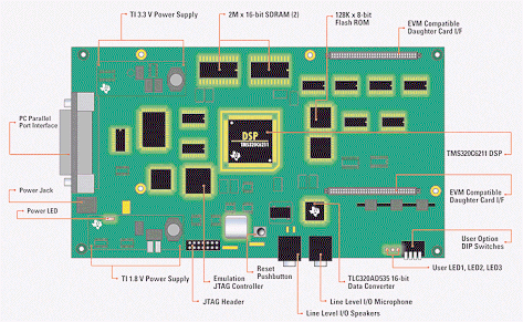 En este proyecto se realiza un medidor digital de flicker, utilizando un procesador DSP Texas Instruments modelo TMS320C6711, montado en la tarjeta de evaluación mostrada en la figura.