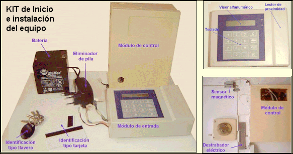 El sistema es autónomo, es decir, puede ser configurado sin necesidad de un PC. En la figura inferior, se muestra el kit básico del sistema y su instalación.