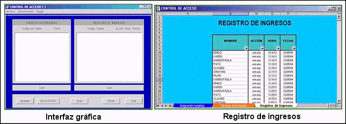 Además de controlar el acceso, el sistema registra los ingresos al recinto, información que puede ser transferida a un PC y desplegada mediante una interfaz grafica, que además permite ver el listado en MS-EXCEL.