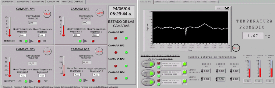En las siguiente figura se muestra la interfaz gráfica del programa que permite monitorear las temperaturas de varias cámaras en forma simultánea, y de desplegar un gráfico para comprobar la evolución de la temperatura.