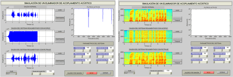 Interfaz gráfica mostrando formas de onda Interfaz gráfica mostrando espectrogramas